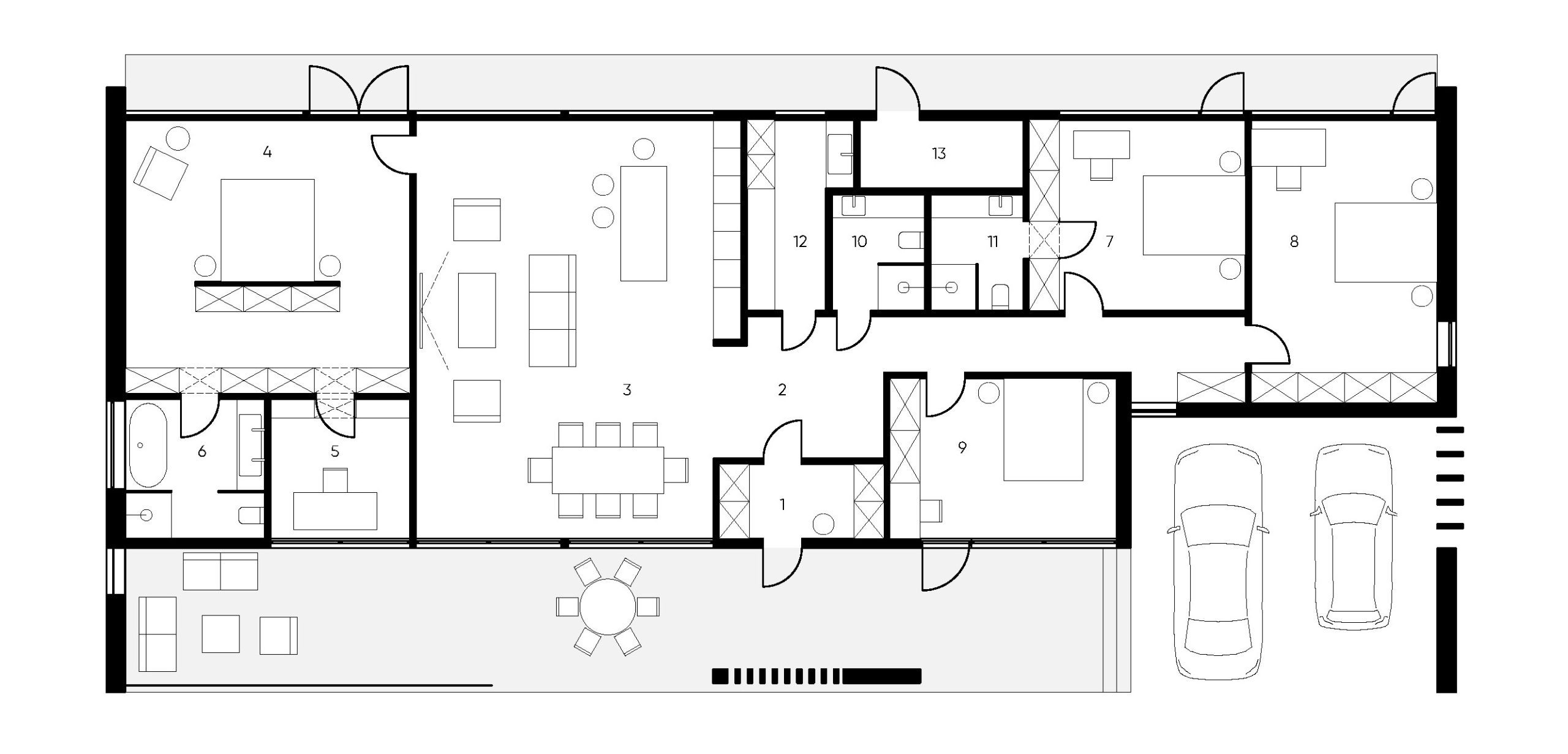 Ein vergrößerter Wohnbereich und drei zusätzliche Schlafzimmer ermöglichen komfortables Wohnen und die Aufnahme von Gästen. Ein separater persönlicher Bereich mit Büro und einem geräumigen Ankleidezimmer bietet die Möglichkeit, sich zurückzuziehen und zu konzentrieren. Hier kann man sich wirklich zuhause fühlen und gleichzeitig im Mittelpunkt des Geschehens im Kreise von Familie und Freunden stehen. In diesem Haus kann jeder die Gastfreundschaft und Fürsorge Ihrer Familie genießen.